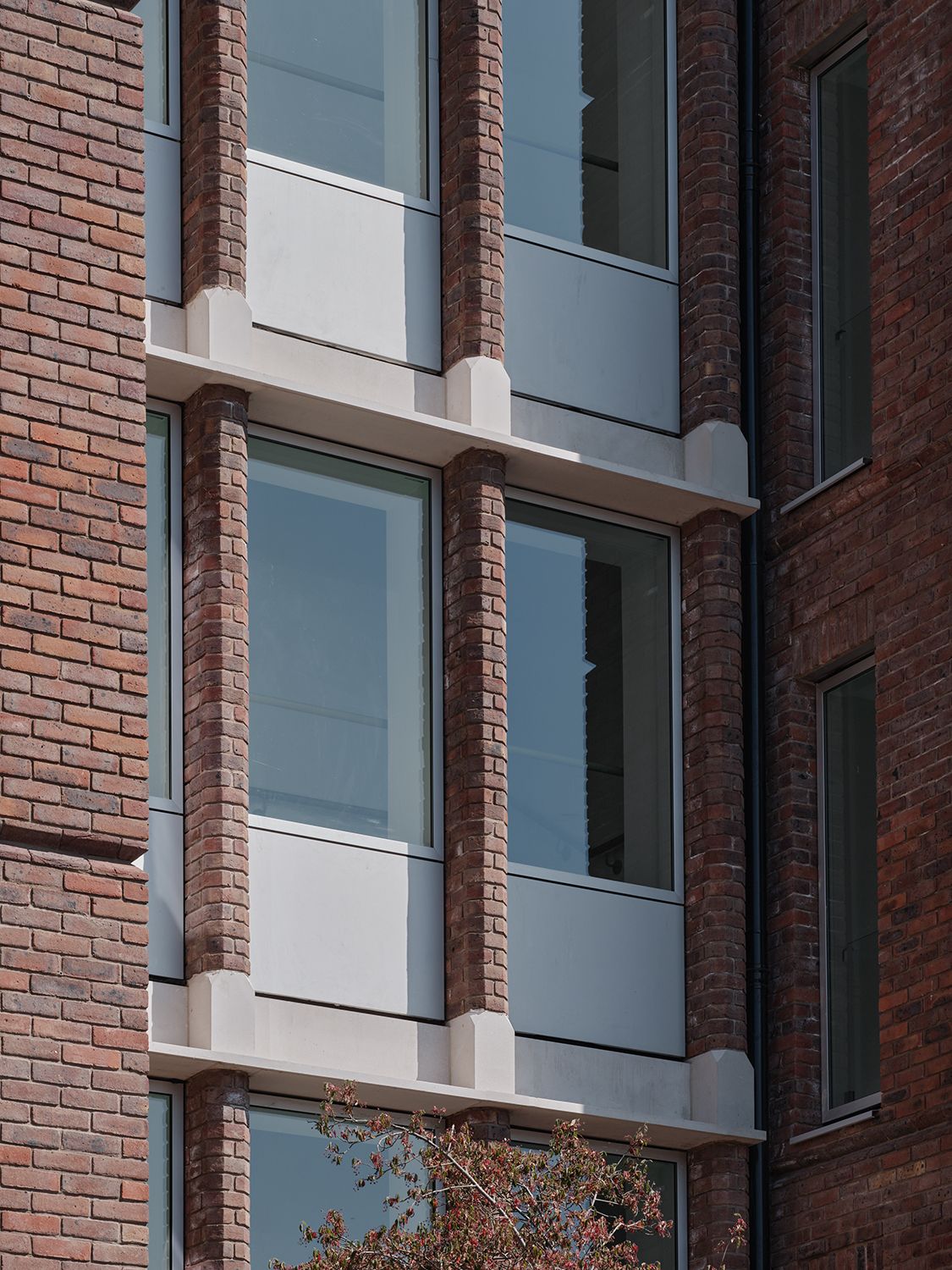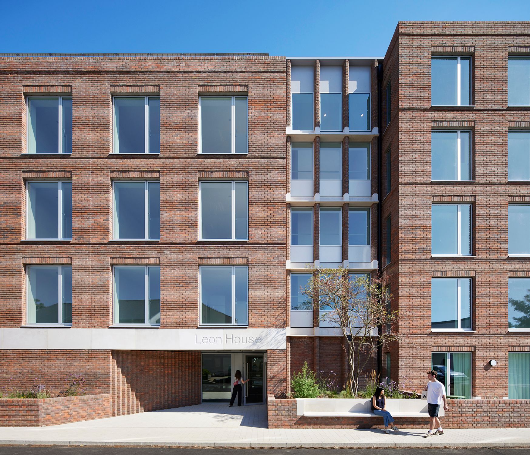 The brick and pre-cast detailing borrows from the local context. The modest residential vernacular has embellishments at their entrance and within the brick detailing. Charlton House has a scale analogous to Leon House and it has clues for the assembling of a more skeletal treatment of stairs and entrance.